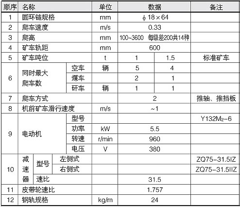 4、爬車爪在鏈條上應等距離安裝,爪間距不得小于l.5倍的礦車長度。